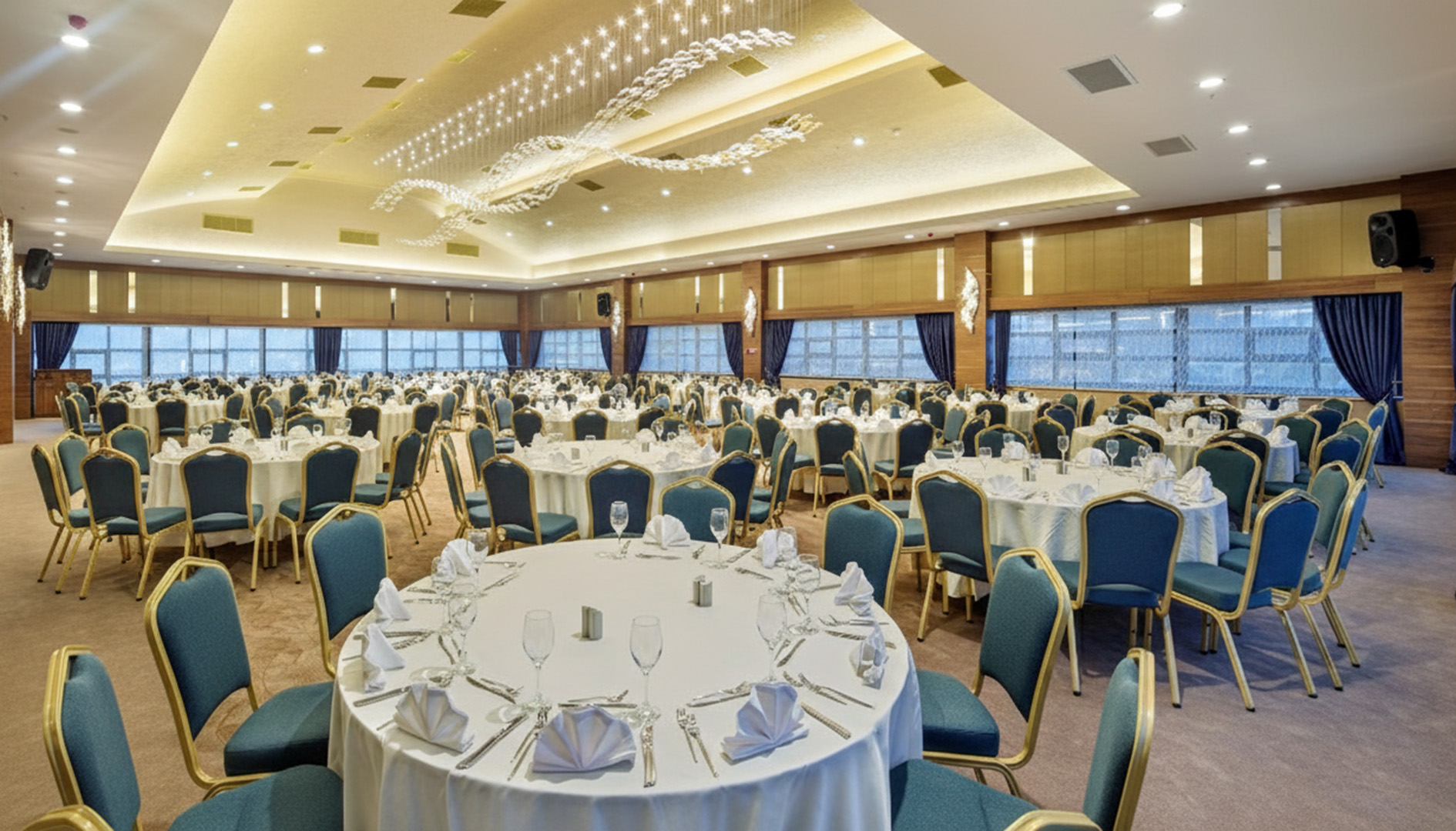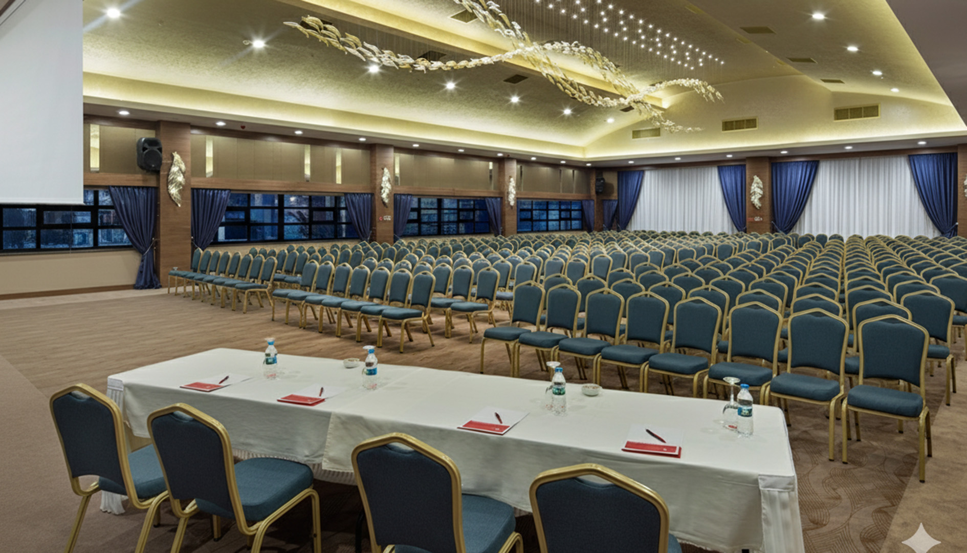 Modern iç mimari, özel havalandırma sistemleri ve üstün akustik ses düzeni.